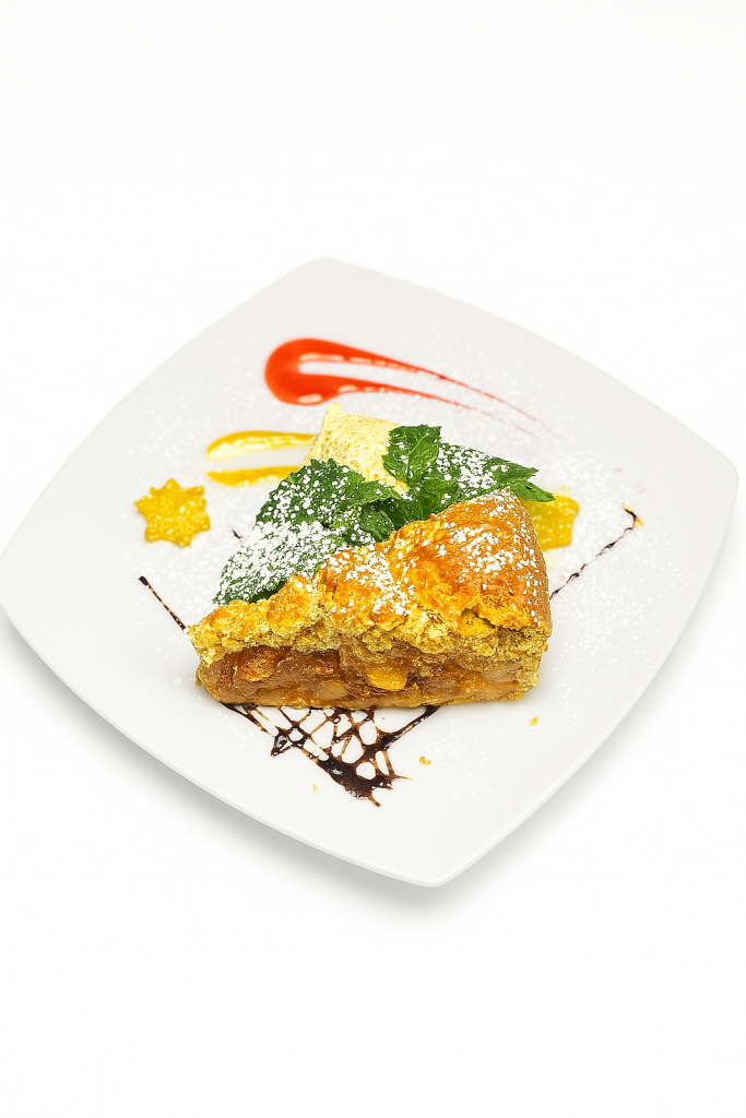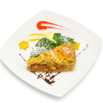 ☻ pasirinktinai su šokoladiniu padažu, su karamele ir riešutais arba braškių padažu.