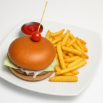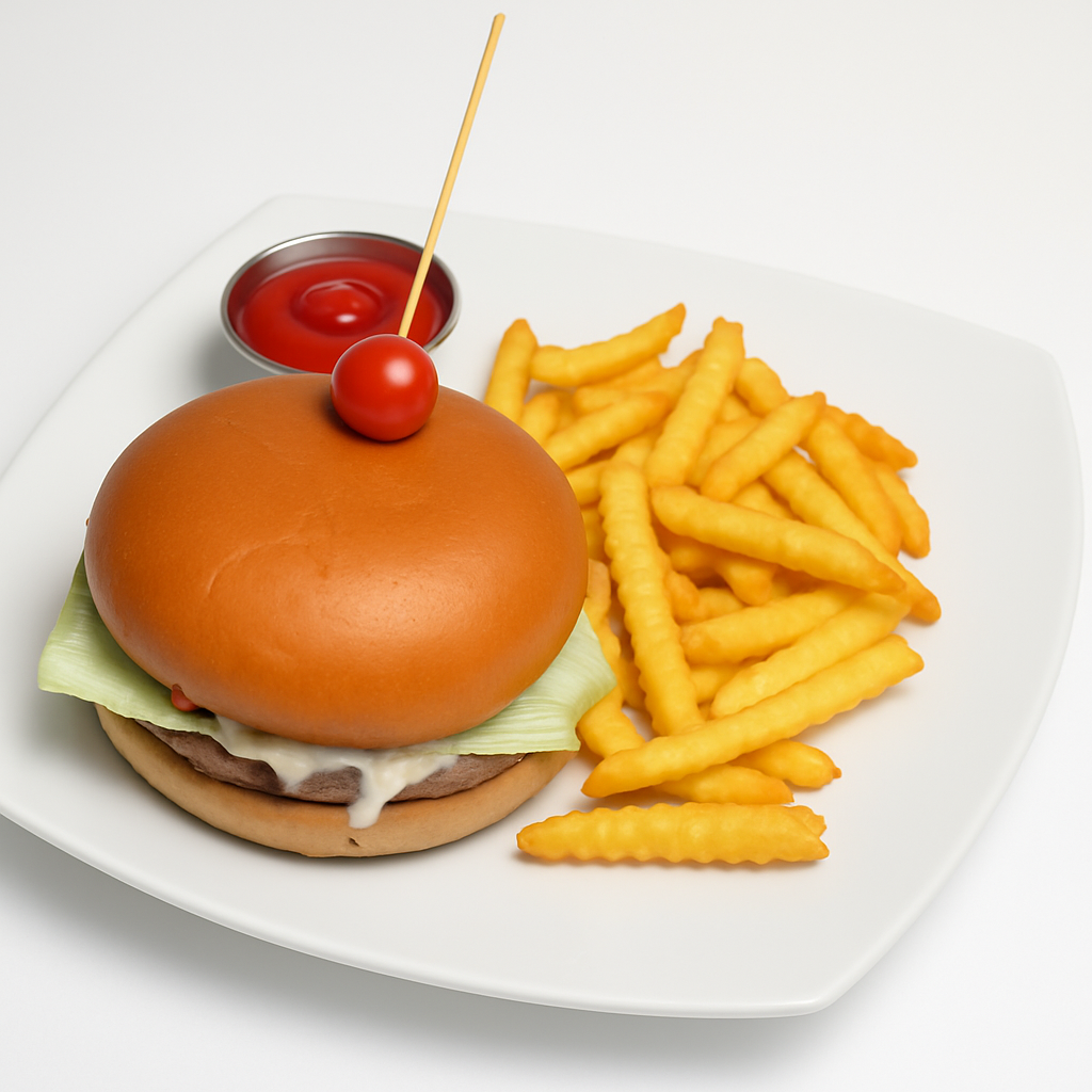 ☻ 9 pcs, with French fries "letters", sauce and fresh cucumbers.